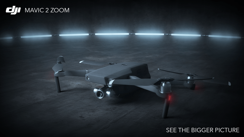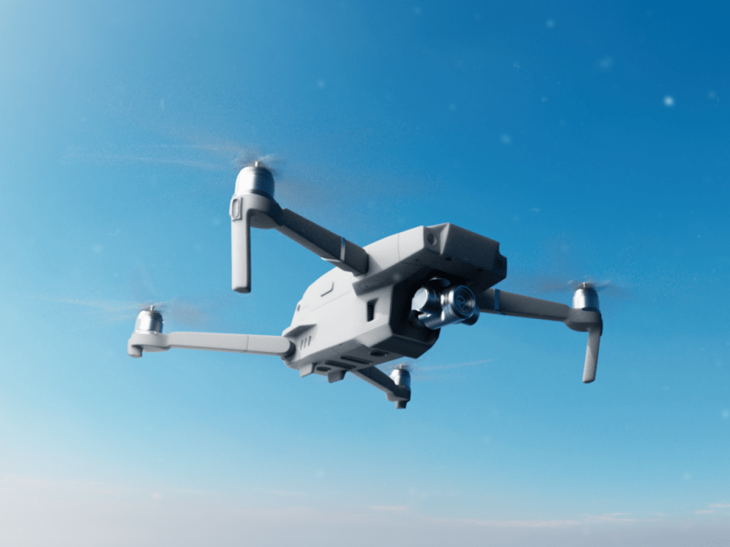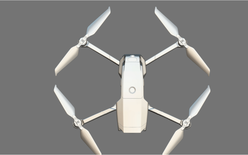 På dessa två bilder ser vi två versioner av drönaren. Den ena är den jag skapade i Cinema4D och den andra är ett fotografi av en riktig DJI Mavic 2 Zoom.