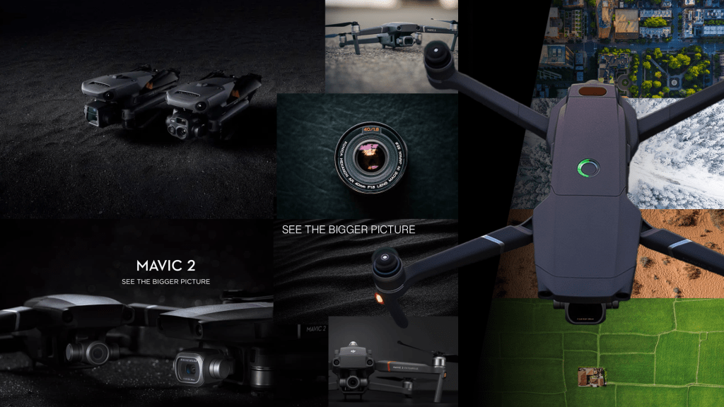 Jag sammanställde de bilder jag hittade online som matchade min vision om det visuella uttrycket i filmen. De bestod av mestadels mörka och avskalade bilder där produkten fick stå väldigt mycket i fokus, vilket var den känslan jag var ute efter. Jag hade också en idé i början om att drönaren skulle färdas över olika landskap och att bakgrunden skulle bytas ut samtidigt som den färdades över landskapet, vilket syns i min moodboard. Men denna idén övergav jag ganska fort då det kändes fel då jag hade en begränsning på max 6 sekunders film.