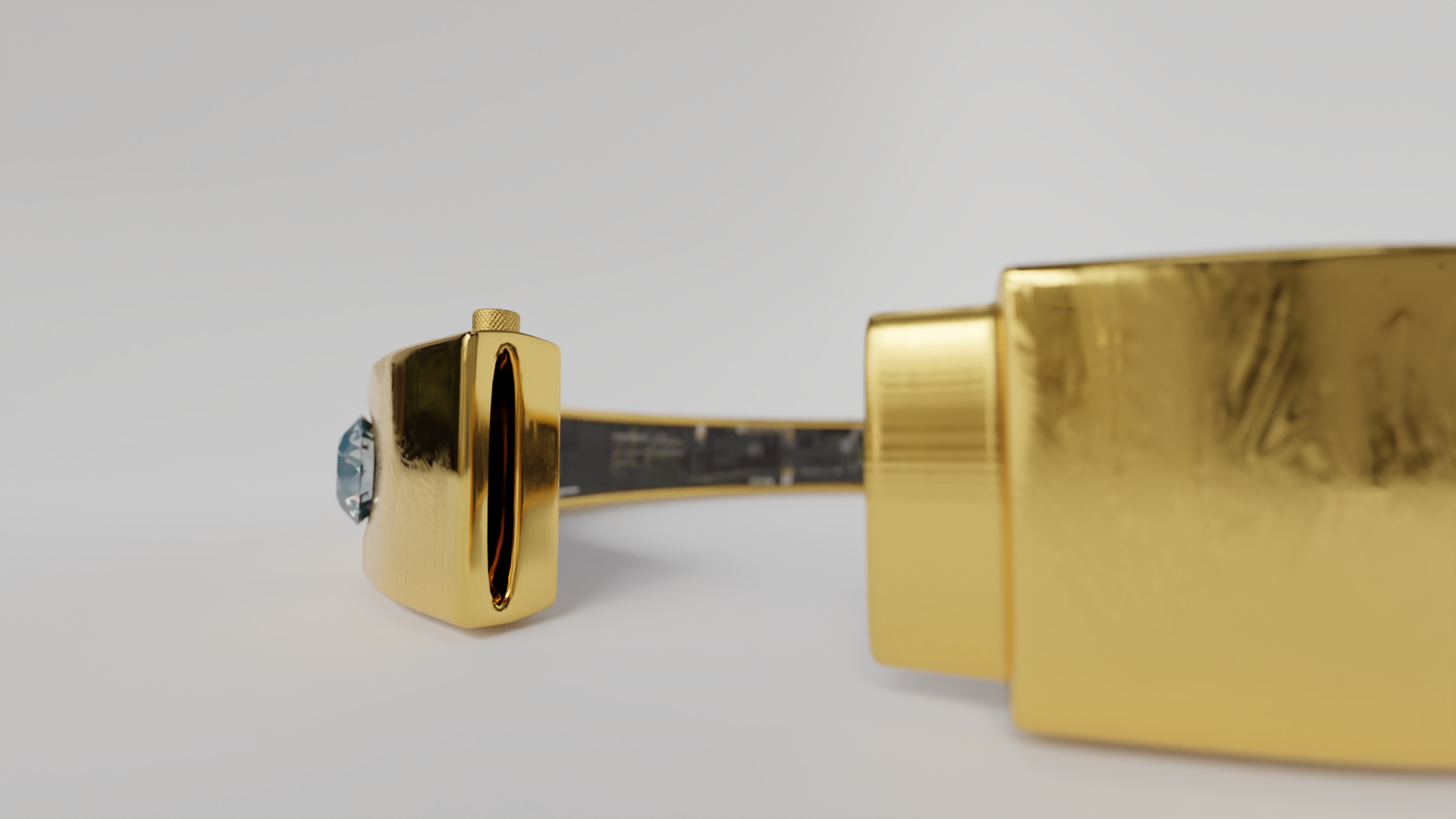 är en accessoar för personer som tycker om att sticka ut ur mängden. För personer som njuter av att ha en accessoar som drar ögonen till sig och som du kan lita på kommer vara din följeslagare i åratal. Med en yta av guld och fyra diamanter behöver du inte tveka på om folk kommer lägga märke till dig.