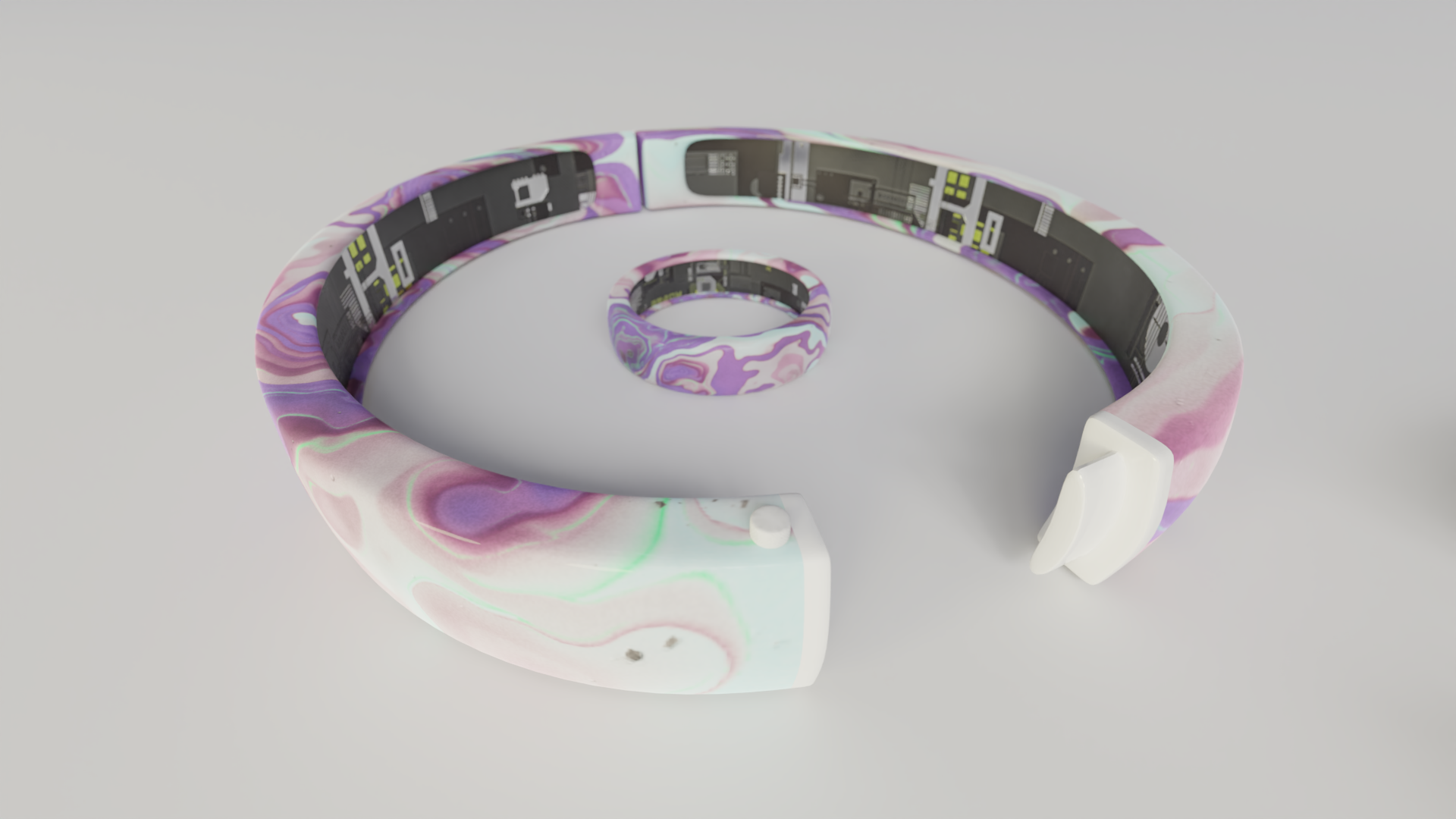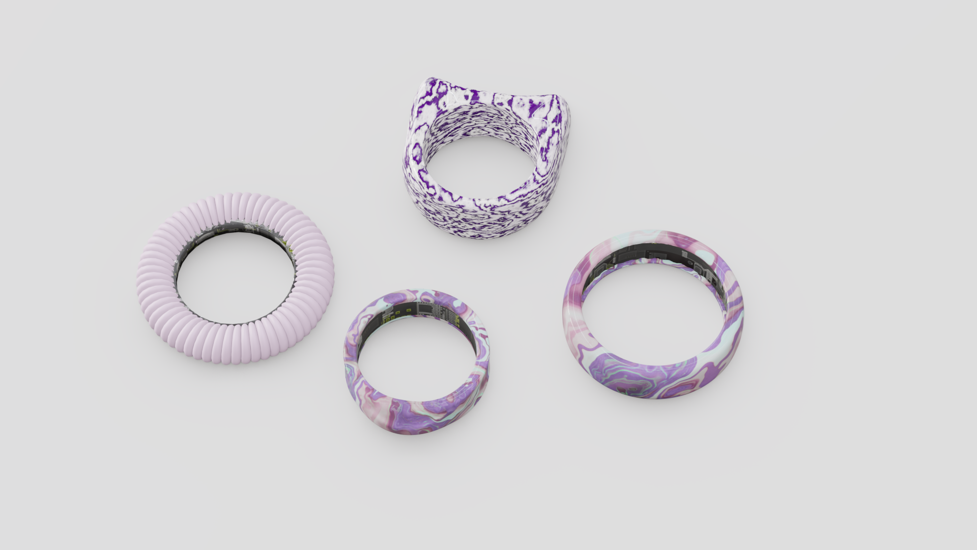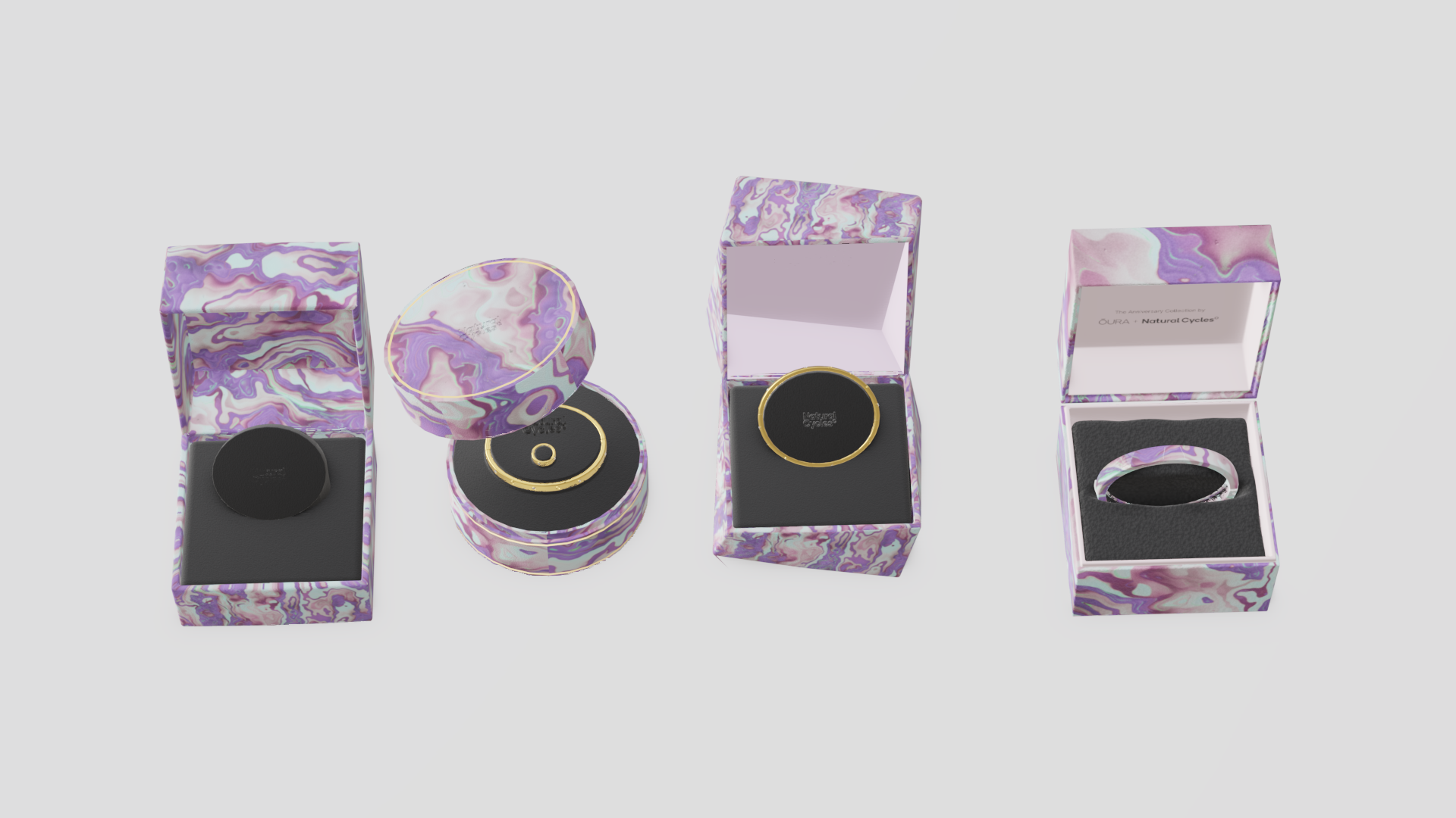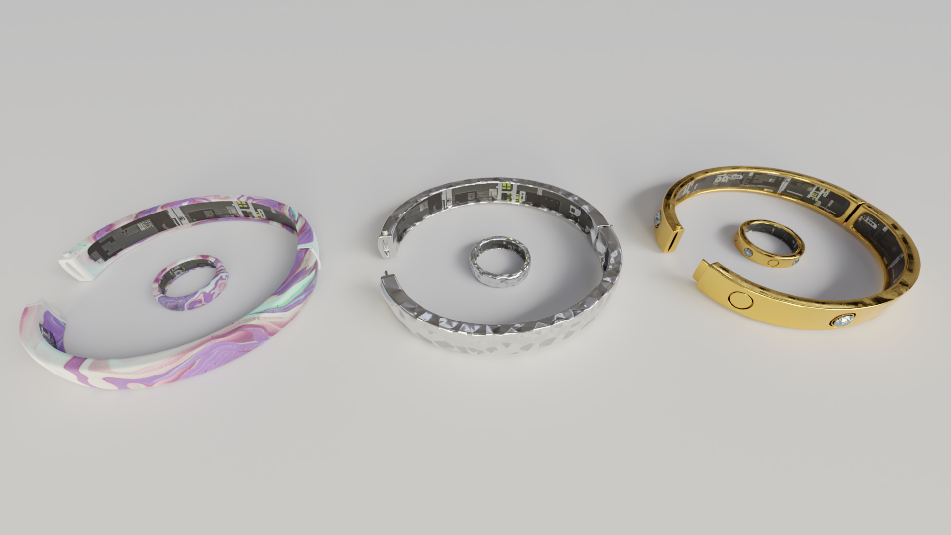 I vårt arbete tog vi fram flera varianter av posters och reklamfilmer för att marknadsföra detta jubileumssamarbete mellan Natural Cycles och OURA. För att kunna göra både poster och reklamfilmer designade vi ringarna i Cinema 4D. Vi visste att vi att vi ville ha tre olika typer av accessoarer som kunde tilltala olika målgruppen. Så första steget blev att ta fram rubrikerna för varje design. Det tre rubrikerna blev: For the trendy, for the minimalist och for the commited. Utifrån detta gjorde designade vi armband och ringar som kunde tänkas tilltala dessa olika typer av individer.