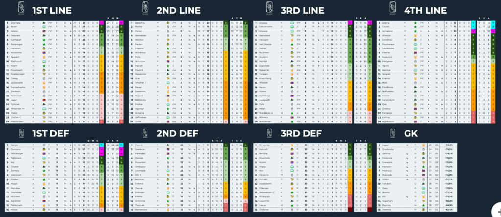 Denna statistik samlas sedan på en sida där man kan se alla spelares statistik för säsongen. Där sorteras spelarna baserat på antalet poäng de gjort. Poängligorna är sedan sorterade baserat på vilken kedja de spelar i.