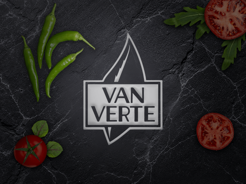 Namnet på vagnen blev VAN VERTE och betyder den gröna vagnen, vilket är ett passade och tydligt namn för att folk ska förstå vilken typ av mat som serveras där. Där skapade jag också logotypen som ytterligare förstärker känslan och informationen om vad det är för typ av mat.