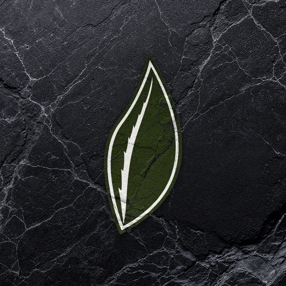 För att göra en komplett grafisk profil skapade jag också exempel på olika användningsområden för logotypen. Här bredvid ses logotypen i negativ variant, enfärgad, med revirgränser samt bildmärket som består av bladet i bakgrunden.